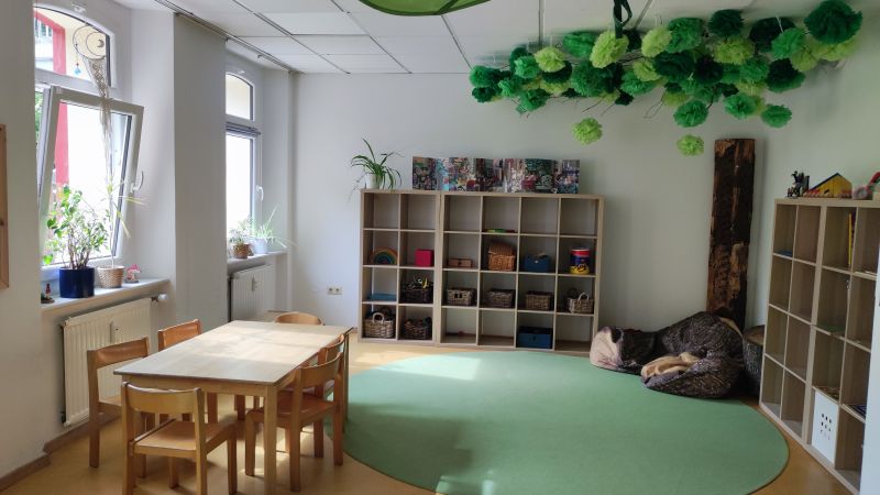 In unserer Kindertagesstätte gibt es zudem eine Mischgruppe. Hierbei handelt es sich um eine Kindergartengruppe mit der Möglichkeit auch Kinder ab 2 Jahren in der Gruppe aufzunehmen. Je nachdem wie viele Kinder ab 2 Jahren in dieser Gruppe sind, haben wir hier die Möglichkeit 20-25 Kinder zu betreuen. In dieser Gruppe sind je nach Platzbedarf, die kleineren Kindergartenkinder. In dieser Gruppe haben wir auch die Möglichkeit die Kinder, die es benötigen, mittags Schlafen zu legen. Die Kinder die keinen Schlaf benötigen, ruhen sich aus und hören beispielsweise eine Geschichte an. Auch das "Sauber werden" ist in für die Kinder in dieser Gruppe oft ein Meilenstein, den wir entsprechend unterstützen zu erreichen.